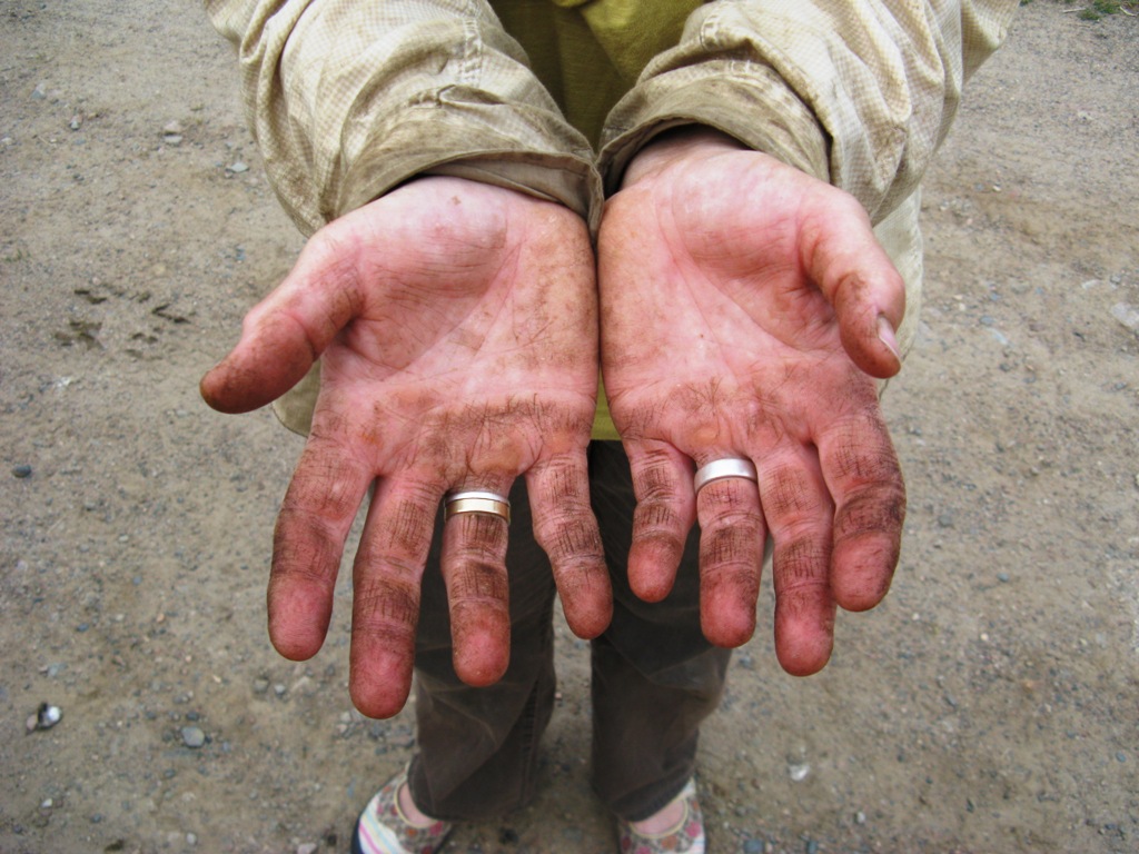 These are Janna’s hands. She is a gardener by trade and by choice. Her hands are in the dirt so much that she cannot scrub away the stain of the chocolaty soil where she gardens along the Pike River in northern Minnesota. Not so long ago Janna had anonymous hands. Then she quit her job as a journalist and became an organic gardener. She sells her produce and products at two farmers markets in a 50-mile radius from her farm, sells wholesale to Natural Harvest Coop in Virginia, MN, and provides weekly allotments to a dozen or so CSA (community supported agriculture) customers. She raises chickens for eggs and chickens and turkeys to butcher. She tends bee hives to make honey and taps silver maples by canoe in the Pike River to make maple syrup. She is busy and usually bushed by the end of the day. Over the course of two seasons when she was starting up her new enterprise, she cleared the land and erected three enormous hoop houses of her own design (not purchased as a kit). Her dad (retired machinist), her mom (retired English teacher), her husband (high school science teacher), and various friends with various degrees of competency in the realms of gardening and carpentry pitch in from time to time. But mostly it has been Janna working from dawn to dark, and after dark when necessary, as was the case in the spring of 2012, when an invasion of variegated cutworms descended on the gardens of our area. Short of poison, the only way to cope with the insidious little bastards, which feasted by night, was to squish them one by one by flashlight on hands and knees. Killing other living things – either because they are killing the plants or animals you are raising or because you are raising the living thing to kill it – is a perpetual backdrop, dilemma, and conversation I have with Janna and my other close friends who garden and raise livestock. We have blood on our hands as well as dirt and it is something we do not take lightly. She and her husband Tim and our neighbors Chuck and Mickey helped us butcher chickens last summer and in other summers helped us dispatch our turkeys. Last year, we helped Janna and Tim butcher turkeys on a freezing cold October day. We will offer our help again this fall.