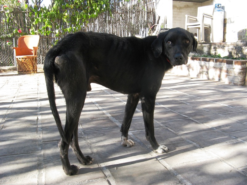 I got out of the truck and yelled a greeting. Dogs – ten, a dozen – came running out of the deepening twilight, and a young man followed. He was a local Alamos fellow, sweet of demeanor, who had been hired as a watchman by an American couple who had recently bought the ranch. He lamented the proliferation of dogs, telling me that El Porvenir is a popular dog-dumping site. I described our starving dog and he said it probably belonged to the old man who lived in the rancho across the road. He wasn’t sure the man was at home but we walked over and shouted. No response, although more dogs came running. I asked the young man to explain to his neighbor that we had taken the dog home with us and that we would return with an update. He did not protest. If anything, his tone and body seemed to approve. It is, however, risky to interpret the meaning of strangers in the dark who speak another language. I never went back to find the old man and tell him what became of his dog. That is another thing I am sorry about.