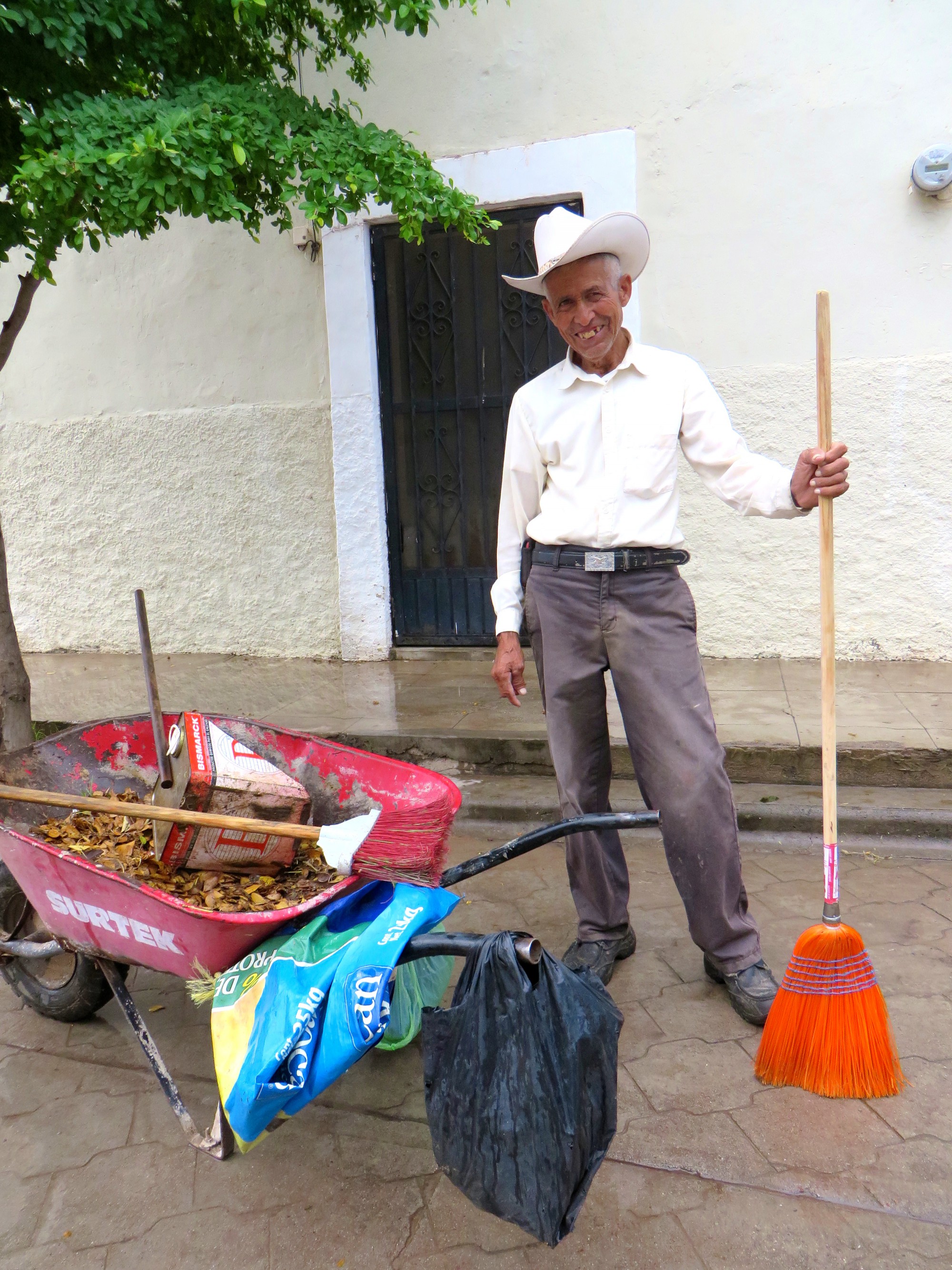 Everyday but Sunday, Francisco Valenzuela Zavala, a wisp of a man crooked with age, sweeps up and deposits in his wheelbarrow the dust and silt on several blocks of Calle Hidalgo, the street where we live in Alamos.
