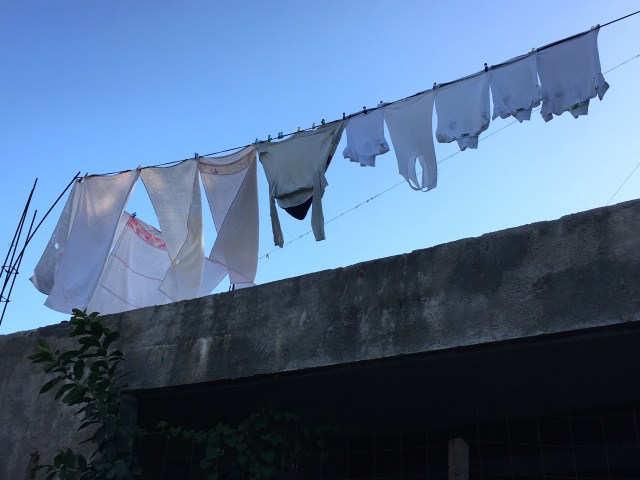 In the town where we live in Sonora, many women still hang out their laundry to dry. They drape the washing over barbed-wire fences or hang it from clotheslines on rooftops. Every day is a changing cavalcade of britches, blouses, underthings, socks, towels, sheets, toddlers’ clothes. This gives me joyous cause to remember on a regular basis one of the most beautiful poems in the English language, Richard Wilbur’s Love Calls Us to the Things of This World.