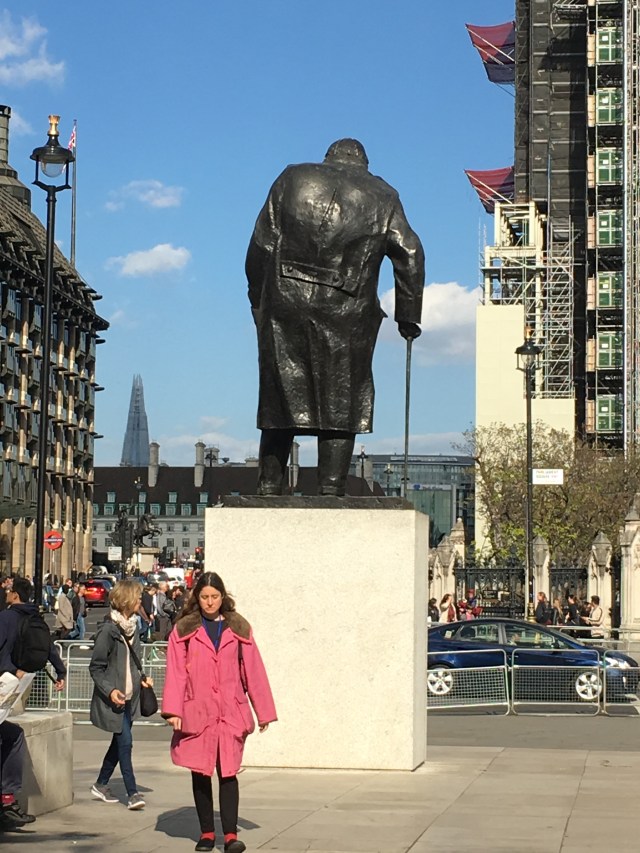 The statue of Winston Churchill in Parliament Square in London is heroic not just because its subject was a hero but because it portrays the man as mortal. His colossal frame is tilting and he leans on his cane. It was a Sunday in May, the day I took the photo of Churchill, and Trafalgar Square, Parliament Square, and the maze of sidewalks in central London were packed with people in all stages of gait. It was my first day ever in London. I was in that special state of traveler’s euphoria—a condition of mind I love—seeing landmarks I’d read and heard about for years. It hardly mattered that my feet were killing me. There lurched Winston Churchill, and if I can imbue a bronze statue with feelings, he and I shared a moment of insight that comes only with age. The walking machine will fail with wear and tear and time. And we noted with a wink the foolish young people scurrying past their national hero and me, taking their gait for granted.