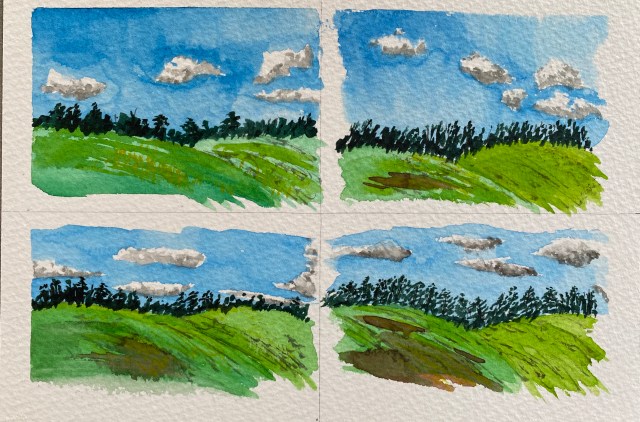 On promising cloud days, I wandered the backroads in my cloud-mobile (our old Subaru). One of my favorite stops, a few miles from West Saari Road, will always be Clyde Johnson’s fields. Here, the road crests a hilltop, and the sky opens up to become a grand stage for clouds. Someone still maintains the farmhouse and yard, but the barn is collapsing. I never met Clyde (now deceased), but Chuck knew him. He had a missing limb, but Chuck couldn’t remember if it was a leg or an arm. It is not all that unusual for farmers to be missing a body part. When I am looking up at the clouds over Clyde Johnson’s fields, I sometimes think if I lifted my arms skyward, I would float up and join them.