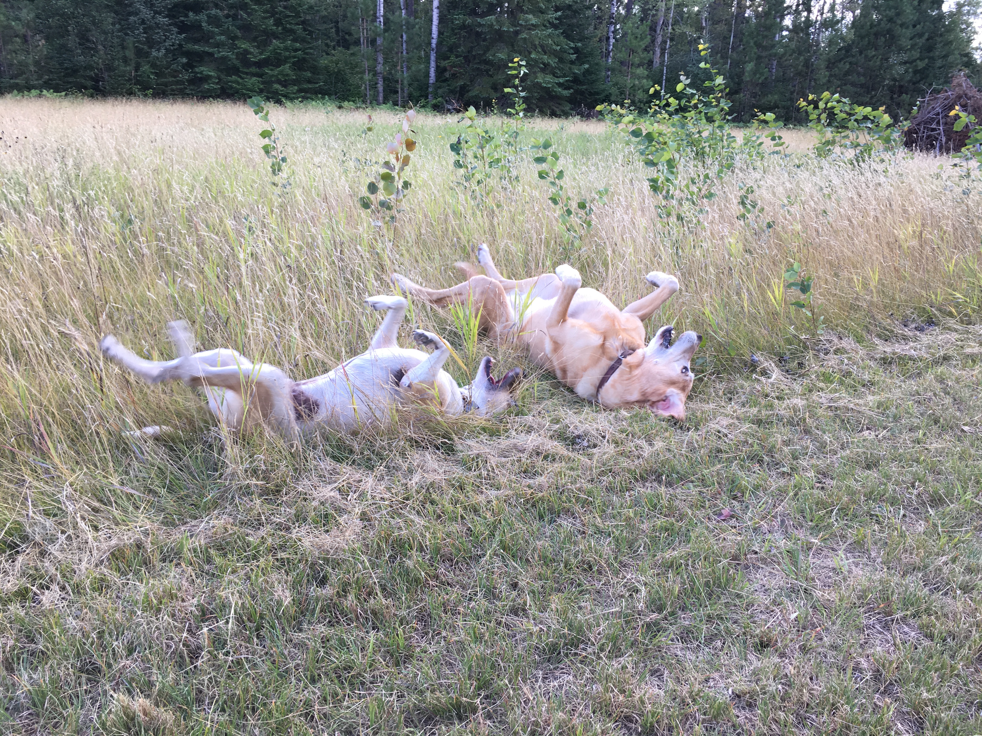 On July 17, 2023, around 7 in the morning I was lying on the kitchen floor doing some stretches. I was listening to some Spanish on my earphones. David came running into the kitchen, imploring “Get, up, get up!”, which is not so easy for me anymore. “Wolves,” he said. I managed to upright myself. There outside the kitchen window, I saw one, then two wolves moving through the trees to the west of the house. They paused, or at least this is what I recall, for nanoseconds and stared piercingly around looking for who knows what. They seemed to quiver with concentration. They trotted along the driveway and up the east meadow and disappeared. Their fur was mottled black, brown, golden orange. They had long legs. One had a squarer, bulkier head. I assumed it was the male; the other slender headed one, the female. Seeing wolves is freakishly uncommon. Even though we live among them, it is as if they exist in a parallel universe that rarely intersects with ours. We have heard wolves call from time to time off in the distance. We see wolf sign regularly. The dogs find and bring us bones of kills, most often a deer shank. We see scat. The only other time we have seen wolves on the farm besides this recent event was on the morning of September 25, 2020, when we watched in amazement as a pack of nine wolves ran south along the far edge of our west meadow and disappeared up the path going into Guy Johnson’s property.