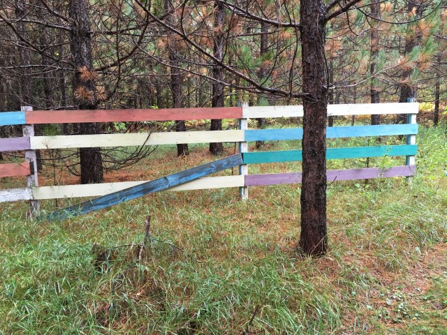 Early on at the farm David and I talked about assembling large sculptures and earthworks in the west meadow. Like many musings we discussed over beers in the afternoons, we never implemented this grand plan, except for one piece constructed by David in 1990 to commemorate our fifth marriage anniversary. We called it the Fence to Nowhere. It is a wooden slat fence which we stained in bright colors. Standing on the eastern edge of the west meadow in an alcove, it was quite striking and became the subject of many photographs and several pieces of art and pottery by our friend Dennis Lorenzen. It was especially beautiful in winter when the fields were snow covered. At some point we decided to let the red pines grow back in the alcove, which happened fairly rapidly over a few years. The Fence to Nowhere – its bright colors long faded to pastels and some of its slats askew – has become a hidden treasure discovered when friends walk or ski on the trails cutting through the woods. In 2021, as the result of two utilitarian decisions to upgrade the farm’s infrastructure, we added by happenstance two more pieces to our west meadow art enterprise – a sleek sculpture that is a solar panel and a septic mound that is an earthwork we seeded in prairie grasses and flowers.